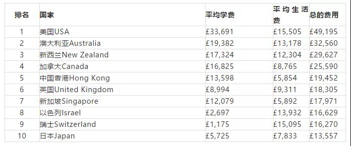 1.美国以平均学费£33,691,总的留学费用在£49,195,成为全球最贵的留学国家;