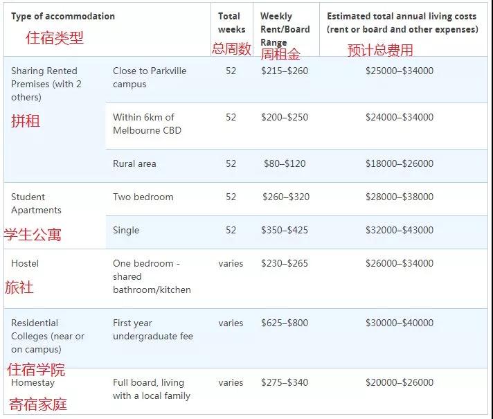 注意:住宿费用根据地点,类型等差别会很大,例如市中心的精装房,肯定会比郊区的房子贵很多;另外,和别人拼租也会便宜很多;