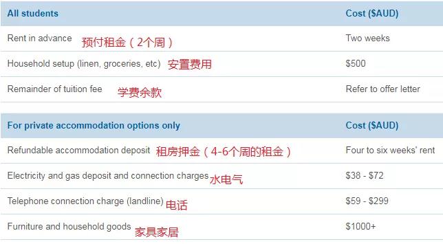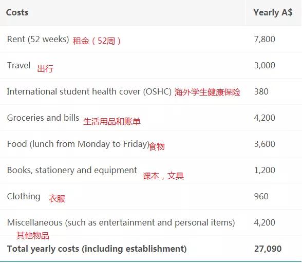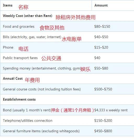 除去学费之外,留学生活费大概需要$20,000一年,所以推荐刚来澳洲的时候,至少带着$2,000澳币,支付最基本的课本,租房押金,家具等等。以下粗略费用,不包括大件物品,像是冰箱,车等等。