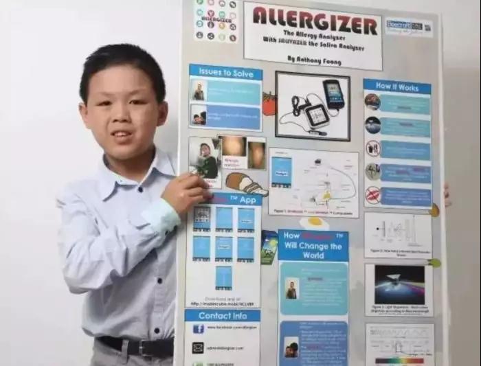 这位12岁男孩可是个迷你发明家,他发明了一款手表名为A-watch,佩戴后可以监测人的过敏原和心跳频率,他的惊人之作使他轻松扳倒3000多名来自全世界的选手,夺得世界发明赛事Origin LittleBIHIdea的金牌。