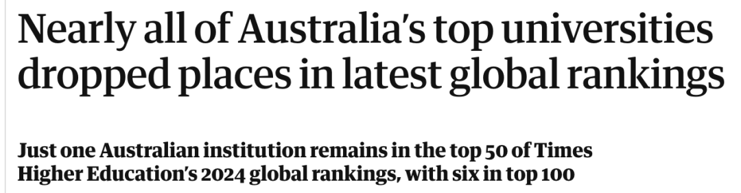 最近,泰晤士高等教育(THE)公布了一年一度的大学排名。在这份2024年全球排名中,澳洲各所大学的排名几乎全部下滑,哀嚎一片。