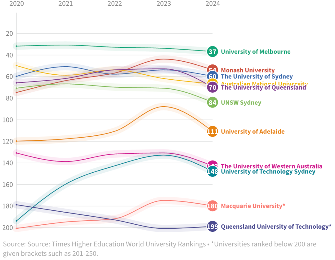 这些大学排名的下滑给澳洲的高等教育产业亮起了红灯
