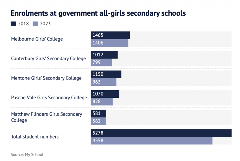 维州五所非择优录取女子学校入学率的下降与更广泛的公立学校入学趋势背道而驰。