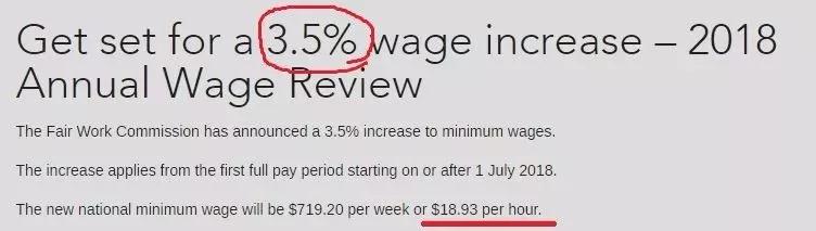 另外,从2018年7月1日起,澳洲最低时薪再次提高了3.5%