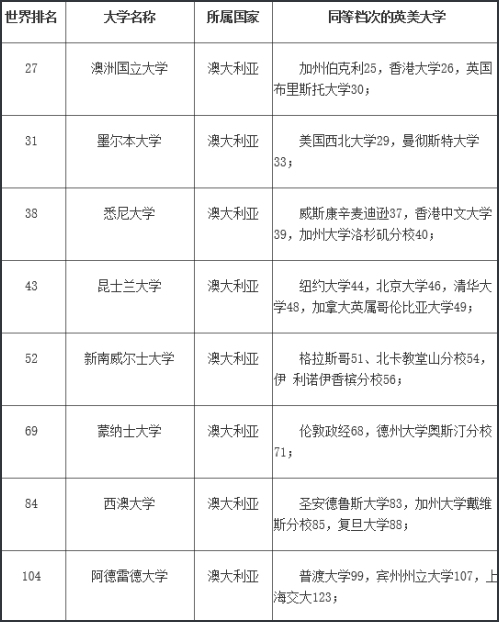 -澳洲国立大学:2013-14QS世界排名第27位,澳大利亚排名第一,建于1946年, 位于澳大利亚首都堪培拉,是澳大利亚唯一享有“国立”资格的大学,曾培养了4位诺贝尔奖得主,2位澳洲总理;世界各主流大学排行榜,ANU多次被评为澳洲大学第一,稳居世界大学前五十;