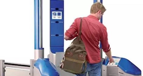 2. 前往自助通关门,插入从第一步操作中获取的小票。抬头直视前方摄像头,此时将拍摄头像并将其与电子护照上的照片进行比对。