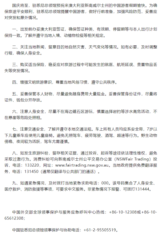 大使馆提醒得非常明显,就是针对国庆假期,有计划来澳洲旅行的中国游客!