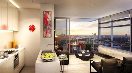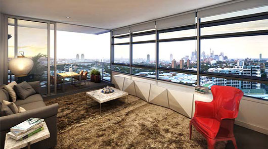 登上高处,周围的建筑似乎踩在脚下,欣赏到的风景是任何其他建筑不可比拟的。悉尼市中心,码头以及所在地区和公园景色尽收眼底。有色玻璃墙特色鲜明,为公寓提供了良好的采光,大大增加了空间感。公寓的设计理念就是要赞美地理位置享有的空间感和光线感。