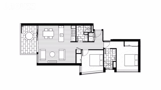 公寓起居空间采用开放式设计,使公寓内各个角落都能有充分的自然光和通透的空间。现代设计,大理石台面,抛光木地板,高品质厨房电器,卧室内是100%羊毛地毯。