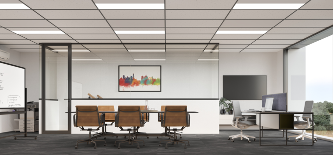 • 设有封闭式的夹层办公室,配有观景窗、玻璃入口和高品质地毯或地板(可选升级)。