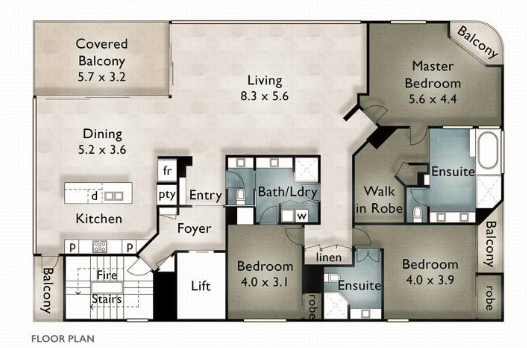 3个宽敞的卧室,3个卫生间,2个车位上有存储空间。