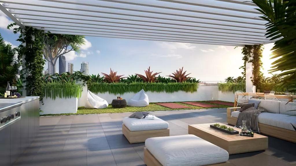 大楼由获奖无数的HAL Architects设计:一楼设有精品咖啡厅;九楼设用空中花园,烧烤区,休闲娱乐区及瑜伽运动区,让居民沐浴着阳光享受黄金海岸的沙滩美景。