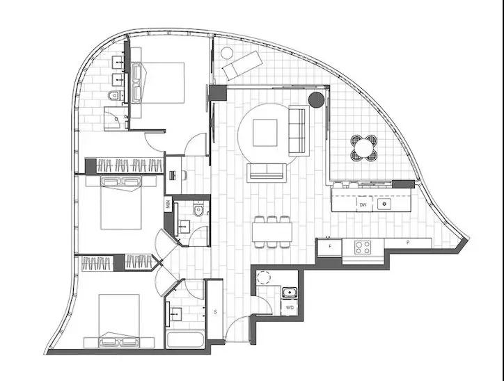 全玻璃打造的建筑外观设计,让ENCORE在众多高楼中脱颖而出,而柔和的线条配以全景落地窗,更是将美学、采光、景色融合到极致。