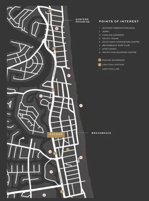 ENCORE位于布罗德海滩地区36-38 Britainnia Ave, 距离海滩仅350米,是黄金海岸目前最热门的旅游和住宅完美结合的社区;同时这里紧邻玉湖集团价值10亿澳币珠宝三塔高端公寓项目。
