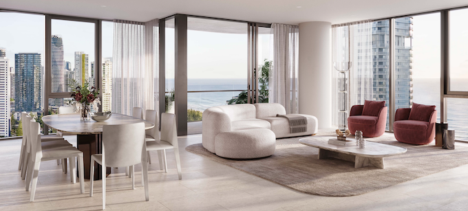 39 Peerless 现售价 305 万澳元起,目前仅余少量珍稀席位,项目已正式动工,预计于 2027 年中竣工交付。整栋建筑以优雅流畅的曲线美学勾勒天际线,自街景自然延展,挺拔升至 36 层高空,与海岸环境相互呼应,展现现代建筑与自然景观的和谐融合。项目旨在为追求归属感与安全感的高端人士打造一处兼具奢华氛围与生活实用性的理想居所,在便利与舒适之间取得完美平衡。