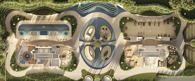 整体建筑设计采用有机流动的曲线形态,呼应场地自然地势与亚热带景观特征。建筑仿佛从土地中自然生长而出,尊重环境肌理与地域历史,呈现出极具雕塑感与艺术气息的外观轮廓。设计强调建筑与自然之间的无缝连接,使居者在日常生活中始终感受到海岸风景与自然能量。
