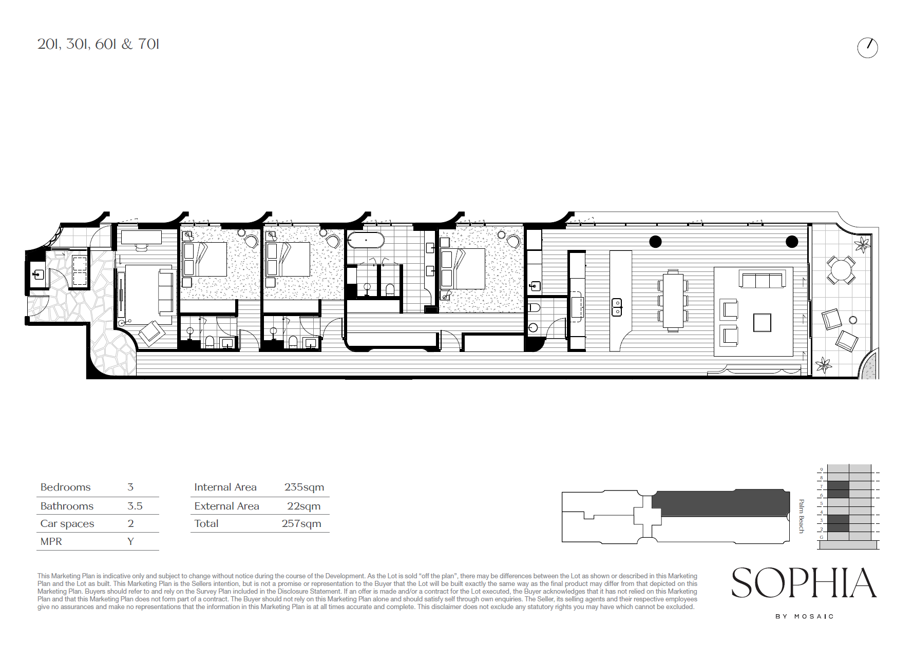 臻稀海岸藏品 · 棕榈滩北端一线临海杰作。坐拥 Palm Beach 北端极为稀缺的正面海滨地段,Sophia by Mosaic 作为 Masterpiece Series 的最新力作,以无可复制的地理优势,傲立于太平洋纯净沙滩与湛蓝海水之间。项目拥有开阔的一线海岸 frontage,出门即达细腻白沙与浩瀚海景,在城市与自然之间取得完美平衡。