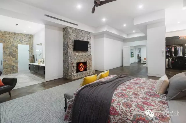 主卧室包括独一无二的吊灯,自然原石打造的壁炉,层高3.8米,实木地板;