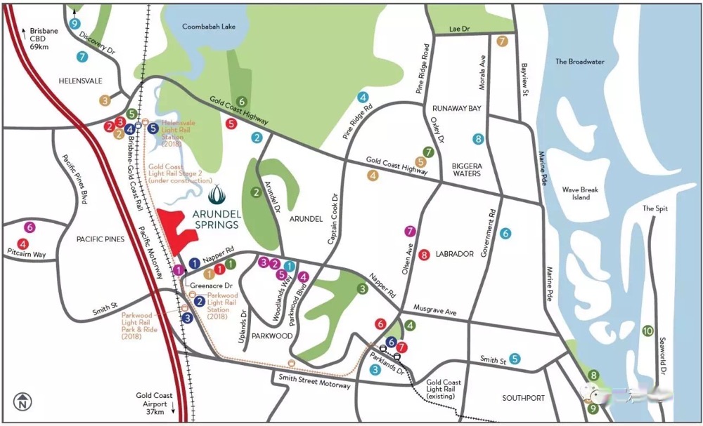 Arundel Springs可以说是轻轨站旁边的稀缺独栋别墅项目,社区距离即将完工的黄金海岸轻轨2阶段Parkwood站仅500米的距离,周边无论是自然公园、购物&娱乐中心、教育&医疗机构、火车站等都非常方便到达。