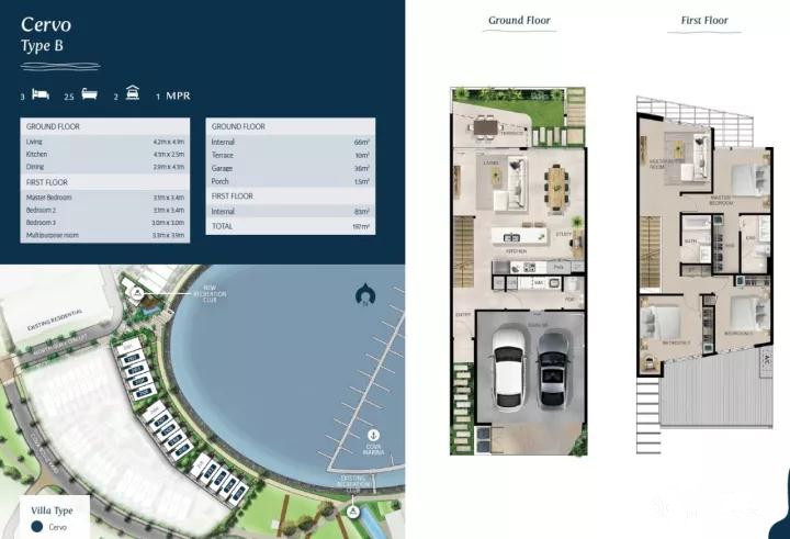 Cova Promenade位于Cova社区的中心,精选15套联排临水别墅,主卧、客厅以及多功能室都可以俯览水景。其室内采用大空间,宽视野,简约大气的精湛设计;同时每套别墅配备有私人花园和超大阳台,布局开阔,配有高档的内饰和用料,体现了社区的现代化及高品质生活。