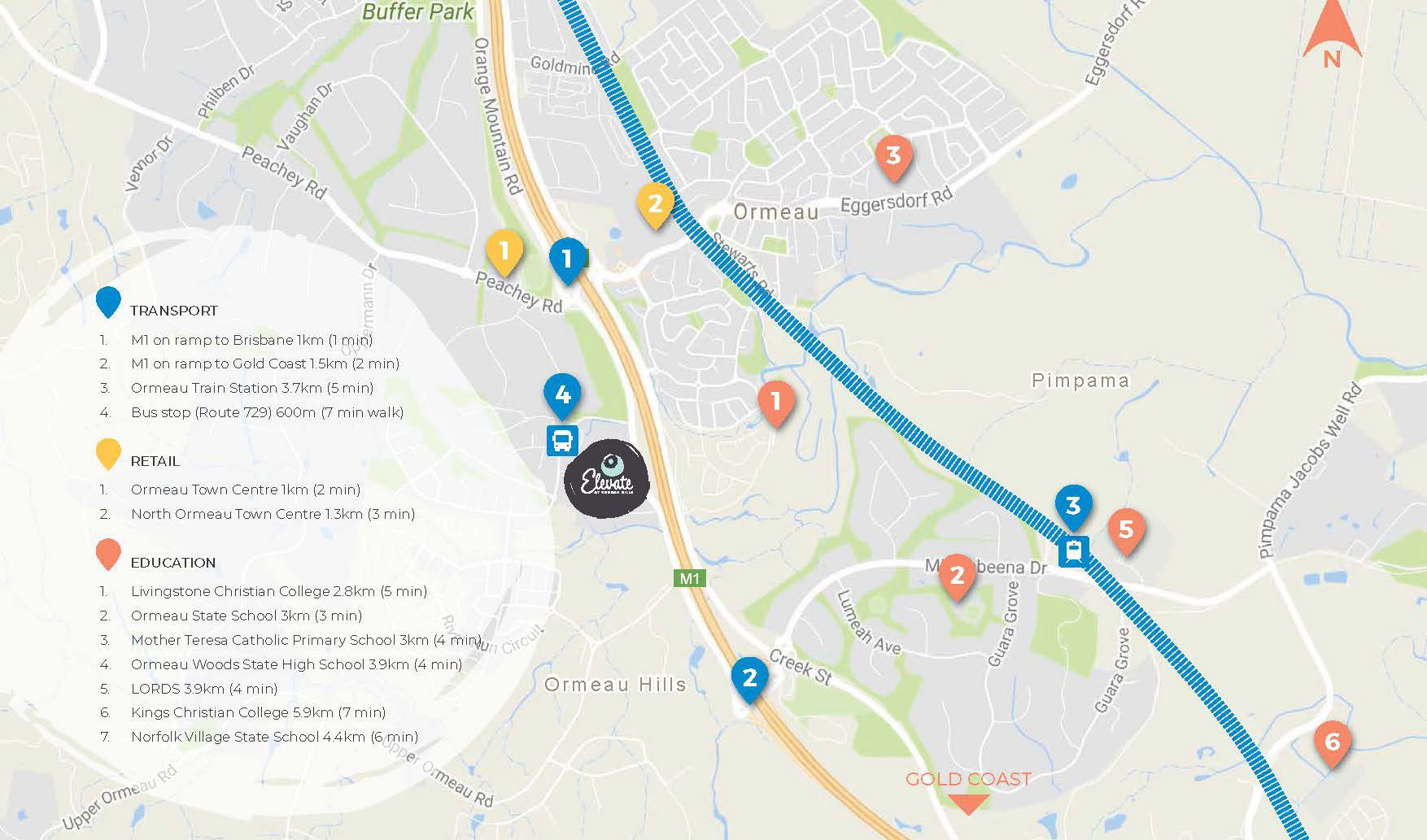 项目位于黄金海岸CBD以北25公里,布里斯班CBD以南40公里,坐落于繁荣的黄金海岸北部走廊的高架位置。