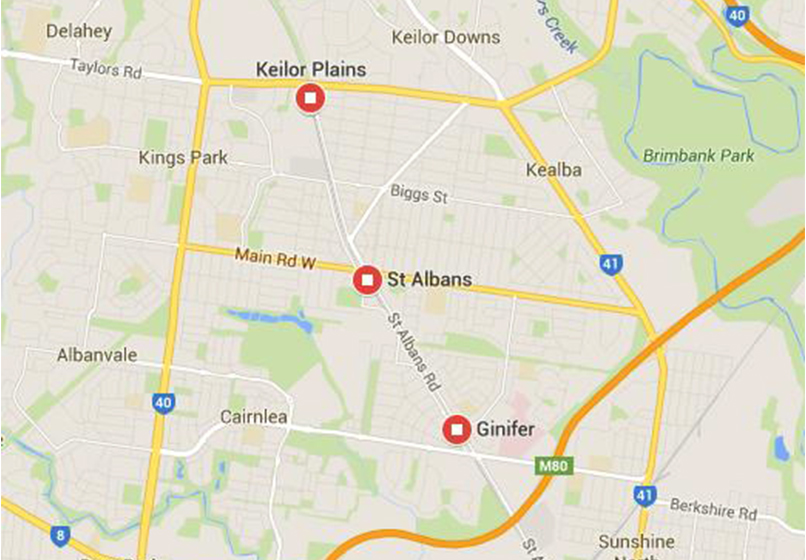火车站:Keilor Plains station St Albans Station GiniFer Station