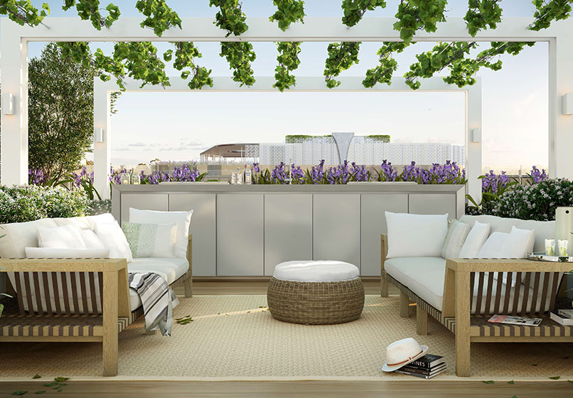 “M楼”天台住户设施:私人用膳区、花园阳台、游戏区开放式烧烤及用膳区