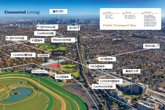 Caulfield Village 位于墨尔本东南区Caulfied区的中心位置,距离墨尔本CBD约10公里的距离,是此前热门公寓Caulfield Heath第二期。该项目是高品质综合性社区,楼下将配套建设社区购物中心及多种社区公共休闲设施,包括超市、咖啡馆、餐厅、精品小店,还有银行、药妆店、邮局等。整体社区功能完善,生活舒适度与便利性远高于普通项目。