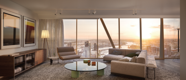 项目西面看海、北面看墨尔本最著名的中心公园,81 层更是酒店的全景豪华大堂,海景、园林、城市全貌尽在眼下,足不出户就能尽享墨尔本城市繁华,看一线海景。
