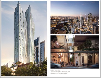 墨尔本380正位于墨尔本市中心绝佳的黄金地带,炫丽夺目的大楼里有豪华精致的公寓和顶级设施,还有世界级酒店经营者管理的精品酒店,以及街面零售精品商铺,都将全面提升您的居住生活体验。您所须所爱,都近在咫尺。墨尔本380由亚太区著名得奖建筑设计师Elenberg Fraser操刀设计。其独特精致波浪形外观的双子楼建筑,加上绝佳的市中心地理位置,势必为墨尔本市中心增添全新视觉景象,成为追求舒适方便,高尚生活品味人士的新宠。