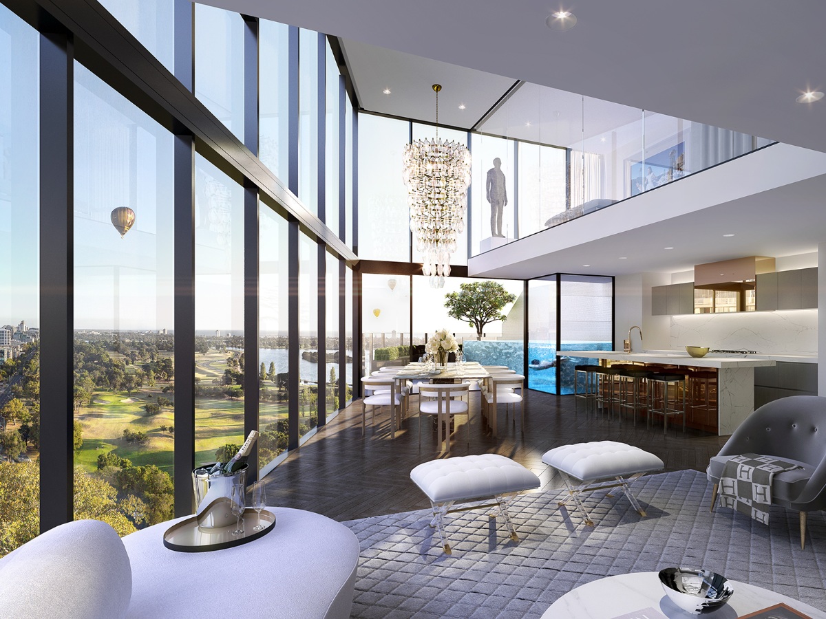 卓越的室内设计,可透过落地玻璃饱览Albert公园和城市全景