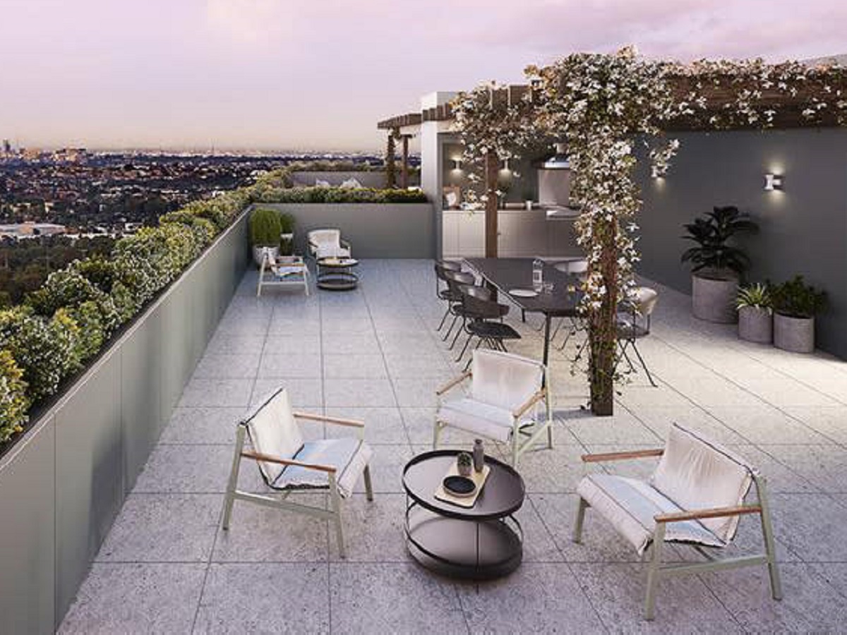 在地面上,一系列的零售和餐饮空间在街道上连接起来,而两个私人入口则为居民提供安全的通道。上层的阳台与玻璃栏杆站在一起,而一名居民的屋顶露台则在墨尔本城市天际线的不间断景观中沐浴。