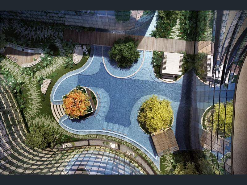 St Boulevard为居民提供了奢华的度假风格生活,内部的花园泳池保护区空间包含了部分植物园和部分水上花园的感觉。