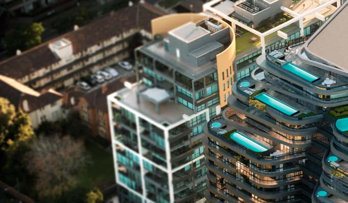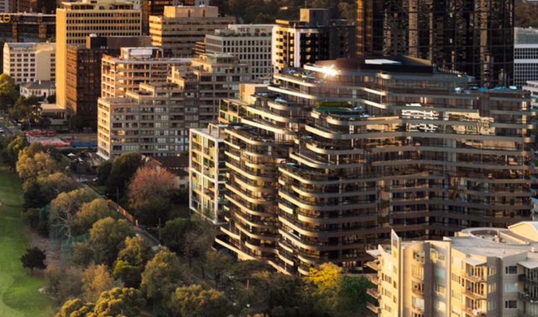 Victoriana项目由Rothelowman设计,灵感来源于附近Albert Park Lake,包括圆形的外观,与周边自然景观融为一体,层叠的露台和花园通向公园和湖畔。