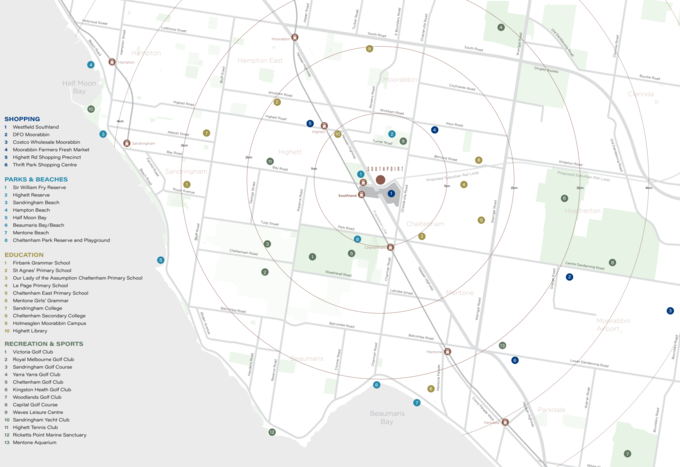 Southpoint是舒适、时尚和便利的结合处。它耸立在Westfield旁边,毗邻Southland火车站、公园、高尔夫球场和桑德灵厄姆海滩,让您置身于无与伦比的购物、娱乐和交通选择的中心。由著名建筑师Rothelowman设计,Southpoint将成为当代生活的地标。