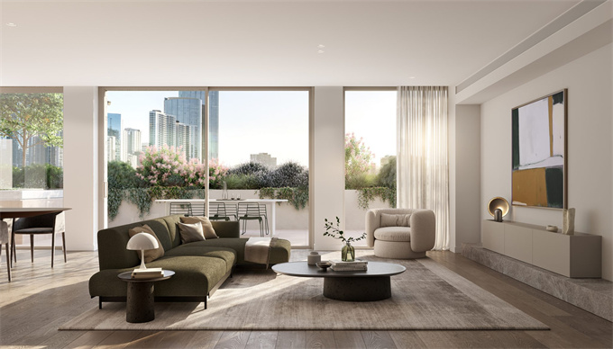 宽敞舒适的布局,精心设计的布局和阳光充足的起居区,无缝延伸至私人户外休闲区,让您尽享舒适。这些豪华公寓均采用优质装饰和家电,包括天然石材、人造木地板、羊毛地毯、Astra Walker 水龙头和 Gaggenau 家电。每套住宅还设有 2 个停车位,部分住宅提供私人车库。