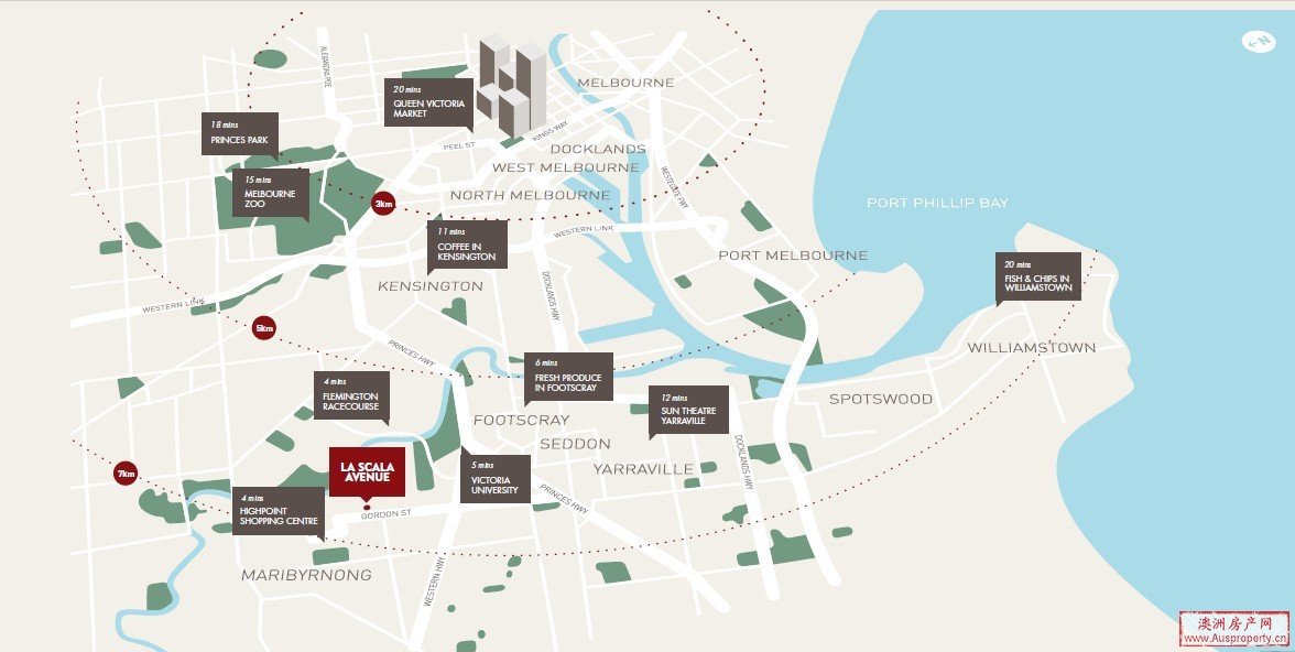 LaScala项目坐落于Maribyrnong River沿岸-为自然公园地所围绕着,离墨尔本CBD只有7公里。这些独特的住宅提供了一个难得的并独特的机会能享受到一个以现代化便捷及市中心生活方式、地区丰富的自然江边。能轻快的走到永远不能兴建的湿地;跳上自行车轨道、骑自行车进城,或漫步于为高尔夫球建的行人天桥。提供了两全其美,LaScalea成为了一个不可抗拒的河境度假村。