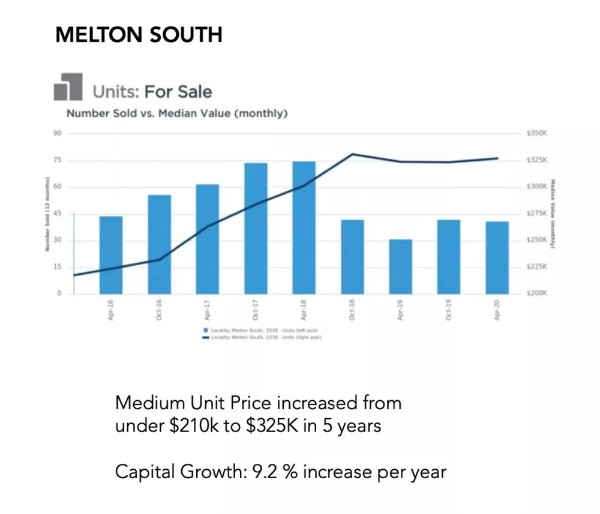 数据显示,5年中,Melton South的价格从21万澳元增涨至32.5万澳元,资本增长每年高达9.2%。