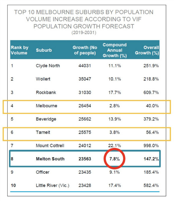 各项数据分析可见,同比墨尔本的其他成熟区域,Melton South有着显著的价格优势及增长潜力,这也使得该区域的居住人口在近几年迅猛增长。