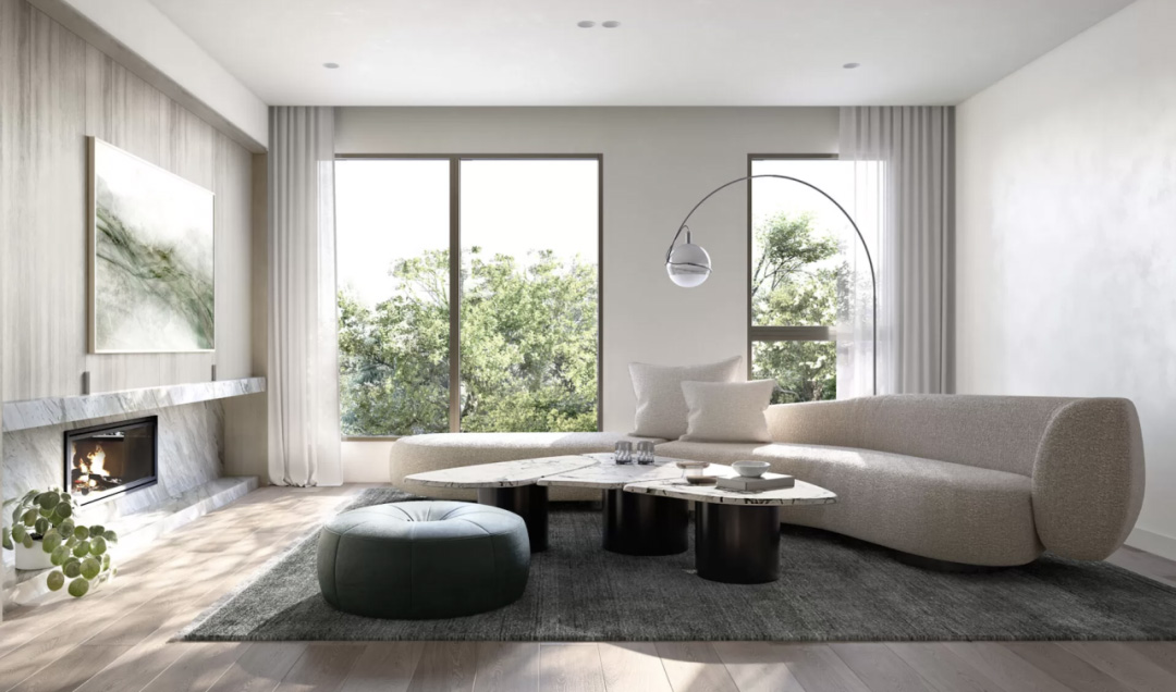 墅区在营造上广泛采用质感高级的暗白色砖石,嵌入具有温度感的暖木材料,并以垂直绿植景观点缀其间,融合在一起形成独特的奢华风格。别墅设计上的弧形立面,彰显着简约纯粹的格调;开放式露台设计,在带来丰富层次的同时,还可以饱览嘉迪纳斯溪景致。