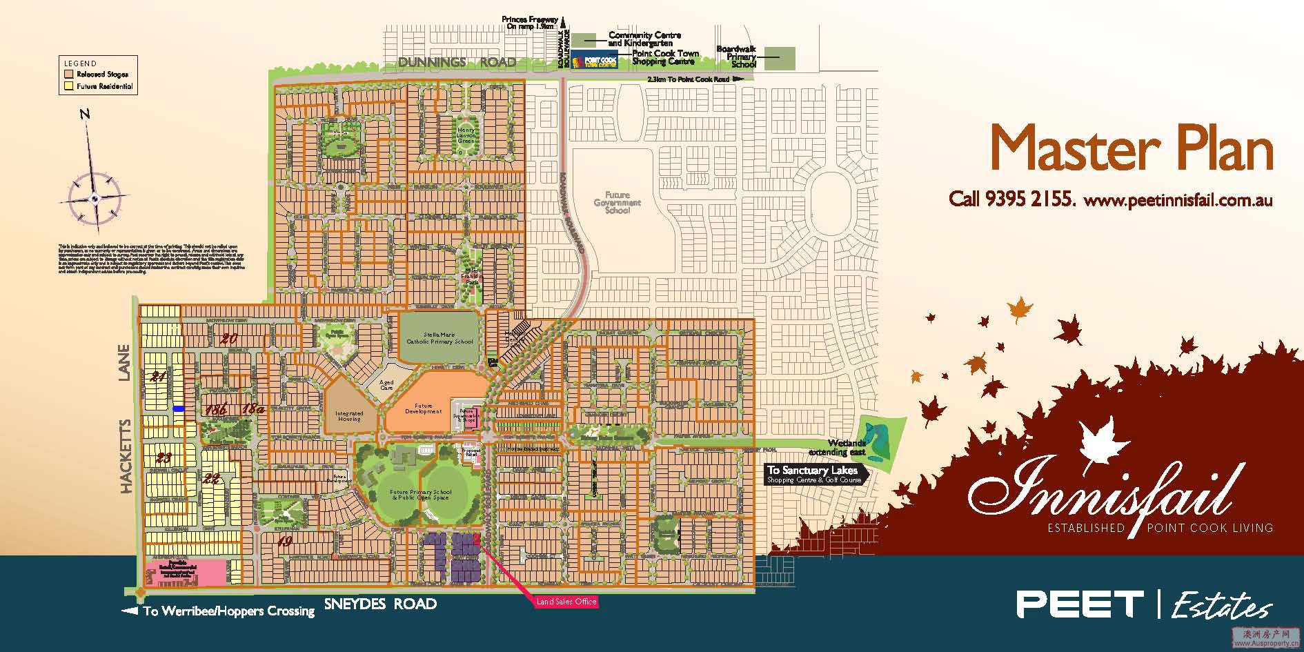 Innisfail位于墨尔本东南部发展速度较快的Point cook,距墨尔本只有22公里,开车只要30多分钟。大商场和娱乐就在回家的必经之路上,而且银行,服务站和医疗中心也只有几分钟的路程。2010年新的幼儿园及小学将建在innisfail小区内。为未来的业主们提供了便利的生活设施。风景如画的小区为业主提供了理想住宅环境。