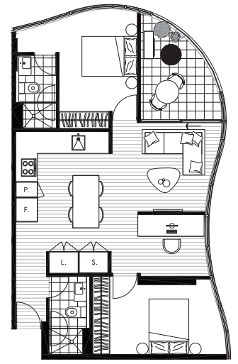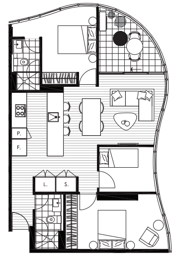光照充足,室内设计从大楼外形曲线中获取灵感,延续了优雅与和谐的特点。在全景窗户的包围下分别可以欣赏到市中心,菲利普海湾,佛莱明顿赛马场和马瑞巴农河的不同景致。