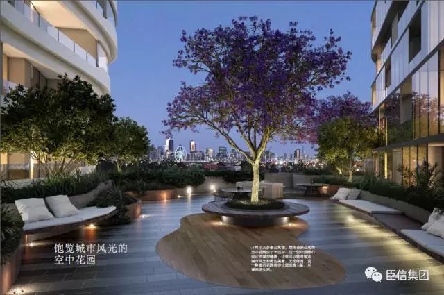 空中花园——拥有独特景观和众多休闲设施的空中花园,坐落于裙楼之上,是专属于住户的私家花园。