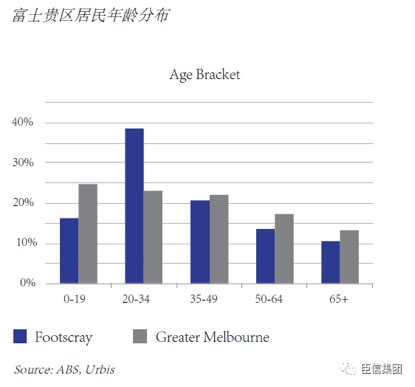 富士贵区的人口年龄与大墨尔本地区相比偏年轻。该区在20到34岁之间的人口占总人口的39%,而大墨尔本地区的数据为23%。人口年轻化的主要原因在于较高比例的学生群体,同时有许多年轻白领,因为富士贵区的房价较低、离市中心较近,而逐渐搬到这里。