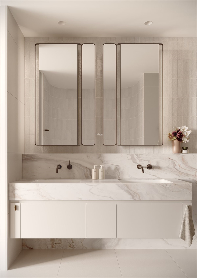 Sculpt 的室内设计和谐和谐,体现了当代的精致和纹理的真实性。精心设计,注重细节,饰面色调以完美的天然材料为特色,将暖色调与丰富的触感元素无缝融合。整个住宅都采用高耸的窗户,可以捕捉周围景观的美丽,同时让住宅获得充足的光线和壮观的城市景观。在这里,高耸的比例营造出一种宏伟而优雅的氛围,宽敞的开放式空间和雕塑般的弧形造型更添一丝优雅。最终,住宅充满了精心打造的细节,不仅提供豪华的空间,而且提供温馨实用的空间。