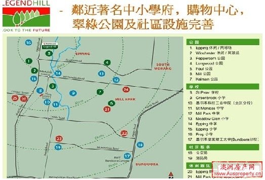Legend Hill小区处于墨尔本北部20公里左右的epping社区,区是墨尔本市政府20.30政策重点发展区域,小区周围医疗,教育,交通设施完善,临近便由火车站,电车站。每栋房屋都包括欧洲进口烹饪厨具,前后花园及遥控双车库。