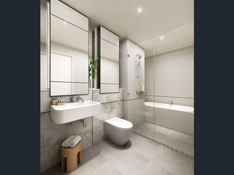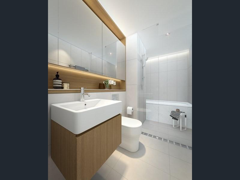 -现代瓷砖浴室和淋浴房,内部洗衣房用干衣机,羊毛地毯,工程木地板。