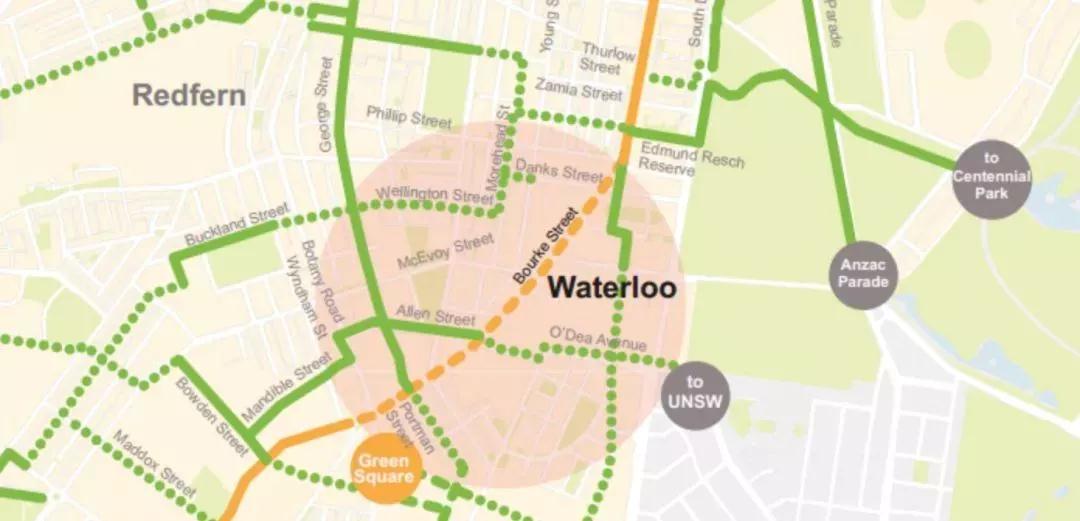 悉尼政府近十年来着手规划Green Square。这个由Waterloo、Zetland、Rosebery及Alexandria组成的区域,位于悉尼CBD和机场之间,政府最终将投入$130亿对其进行历史性的urban renewal重建计划。