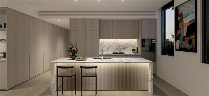 ENSO 的每间住宅都被视为私人休憩之所,等待着您在一天结束时拥抱自己。浴室空间最能体现这种感觉,天然石灰石瓷砖和拉丝镍水龙头营造出富丽堂皇、奢华而宁静的避难所。在舒适的主卧室中,您将醒来享受滋润的阳光,并欣赏悉尼北岸东、北、西三面的美景。踏入清晨,您可以躺在毛绒绒的羊毛地毯上,然后在私人套间中梳洗一番,从宽大的“男女”步入式衣橱中选择一套服装,精神饱满地迎接新的一天。