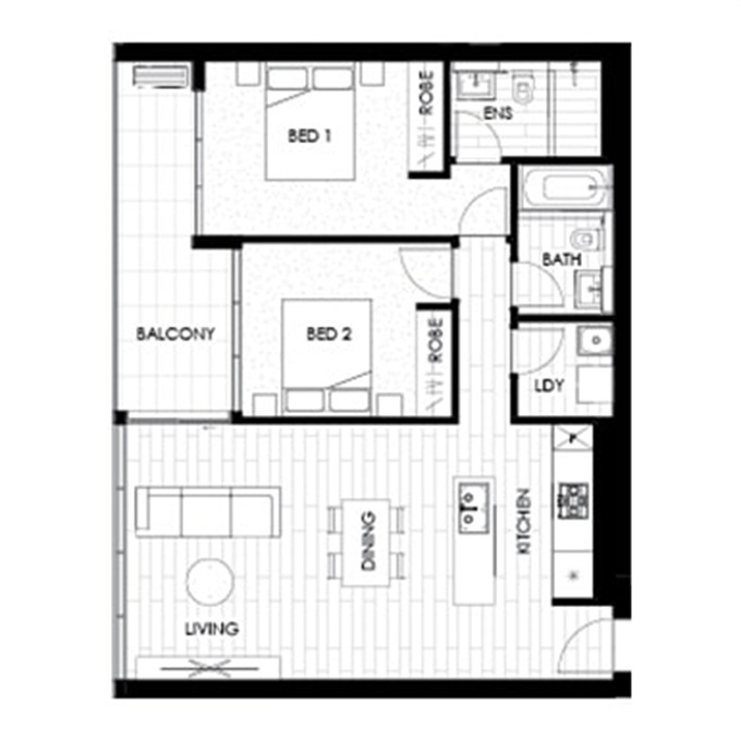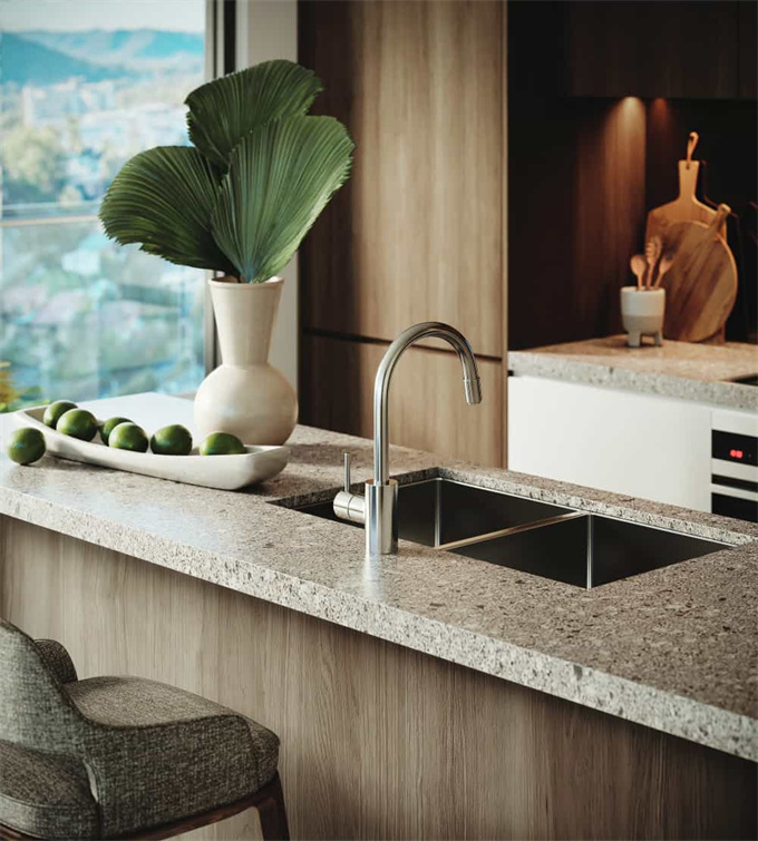 Archibald 的每间厨房都完美结合了外形和功能,非常适合烹饪或与亲朋好友共享空间。优质的 Fisher & Paykel 电器、Grohe 水龙头、Caesarstone 台面和巧妙的布局,加上有色镜面防溅板和木质饰面,使其成为温馨的家庭中心。